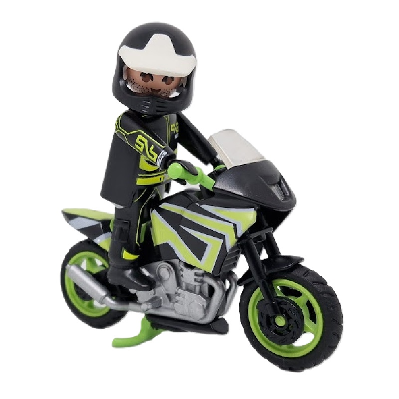 ✔ Figura Playmobil motorista con moto verde