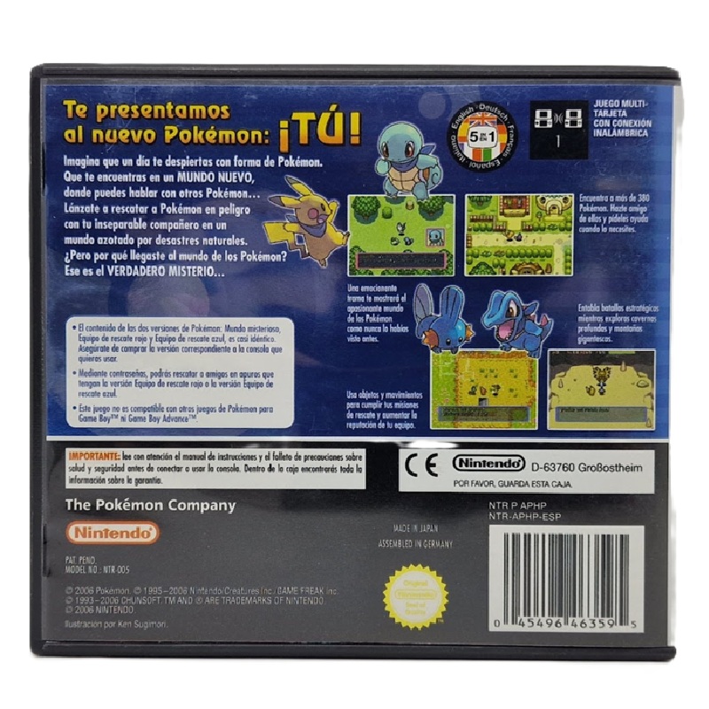 Sumérgete en una de las aventuras más originales de la franquicia Pokémon con Pokémon Mundo Misterioso: Equipo de Rescate Azul para Nintendo DS, un título que cambia por completo la forma de jugar con Pokémon. En esta entrega, tú no eres un entrenador, ¡sino que te conviertes directamente en un Pokémon y comienzas una aventura épica para rescatar a otros Pokémon en peligro!